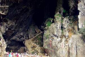 玉溪三洞景区位于阳春市西北部,距市区约70公里,省道S369线绕景区而过。该景区既是省级风景名胜区,又是国家地质公园的重要组成部分。 玉溪三洞景区由漠阳江上游的甘婪河水穿透三座石山溶蚀而成,全长3公里多,均可坐船游览,由二洞乘船往上游。第二洞长约330米,河水清澈流璧,水中多生长鲤鱼。洞中景物丰富,尤以“